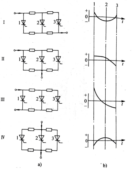 (2)在快恢復二極管開通前后陽極-陰極間電壓較高、開通后電流上升率較大時,常選用開通時間盡量一致的快恢復二極管。但由于快恢復二極管參數(shù)可選擇的自由度太小,為了經(jīng)濟和維修更換方便,常和電路補償方法結(jié)合使用。采用補償后能使元件開通時間的分散度在5~6us左右較合適。補償方法可以在每個快恢復二極管支路中串入均流電抗器,或者將整流變卡器代側(cè)線等多分幾組,減少每個線用支路中的快恢復二極管數(shù)。